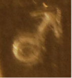 Ynghanol y llun mae’r Haul megis seren aml-bwynt (12 chwith, 14 de), a’r llythyren “S” (Sol) a’r twll cwmpawd arni, wedi’i hamgylchynu gan gylch. O’i hamgylch mae’r cylch cyntaf o diciau cynffurf. Ym mhanel 1 (yn unig) mae “A” wedi’i gynnwys yn y cylch hwn. Mae hon yn cyfateb i “Λ” yn y ddogfen (arwyddocâd ?).
