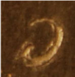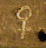 Mae ychydig o wahaniaeth yma rhwng cylchoedd (addurnol) ticiau cynffurf paneli 1 a 5. Yn 1, maent yn absennol ar y chwith i ganiatáu lle i lwybr Comed Halley. Yn 5, mae’r cerfiwr wedi gosod rhai byrrach yn y bwlch yma. Yna ceir, yn ôl yr arfer, gylchdro a llun Mawrth. Mae “D” wrth ochr y blaned yn y ddau banel (y ffordd gywir i fyny ym mhanel 5 – ond sylwer bod cywiriad i lenwi un o’r tyllau sy’n cynnal y pentan yn yr ardal hon o banel 5.) Yn unigryw, nid oes arwydd sêr-ddewiniol ar y naill banel na’r llall (ond gw. Iau, isod).