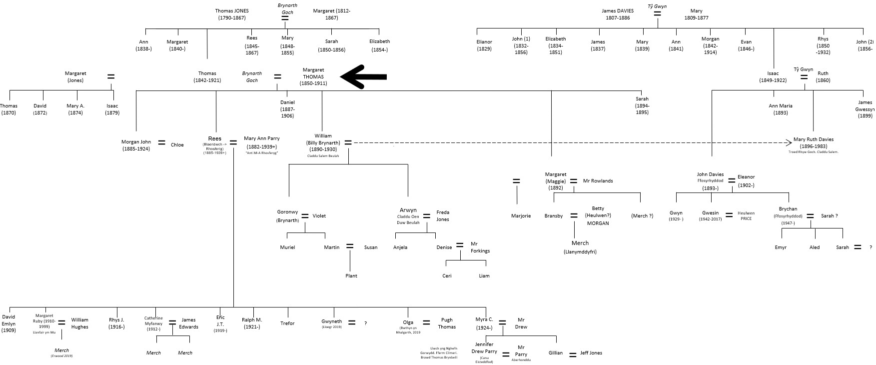Taflen 1a. Brodyr/Chwiorydd Elizabeth Thomas(1846-1909) (Margaret Thomas (1851-1911))
