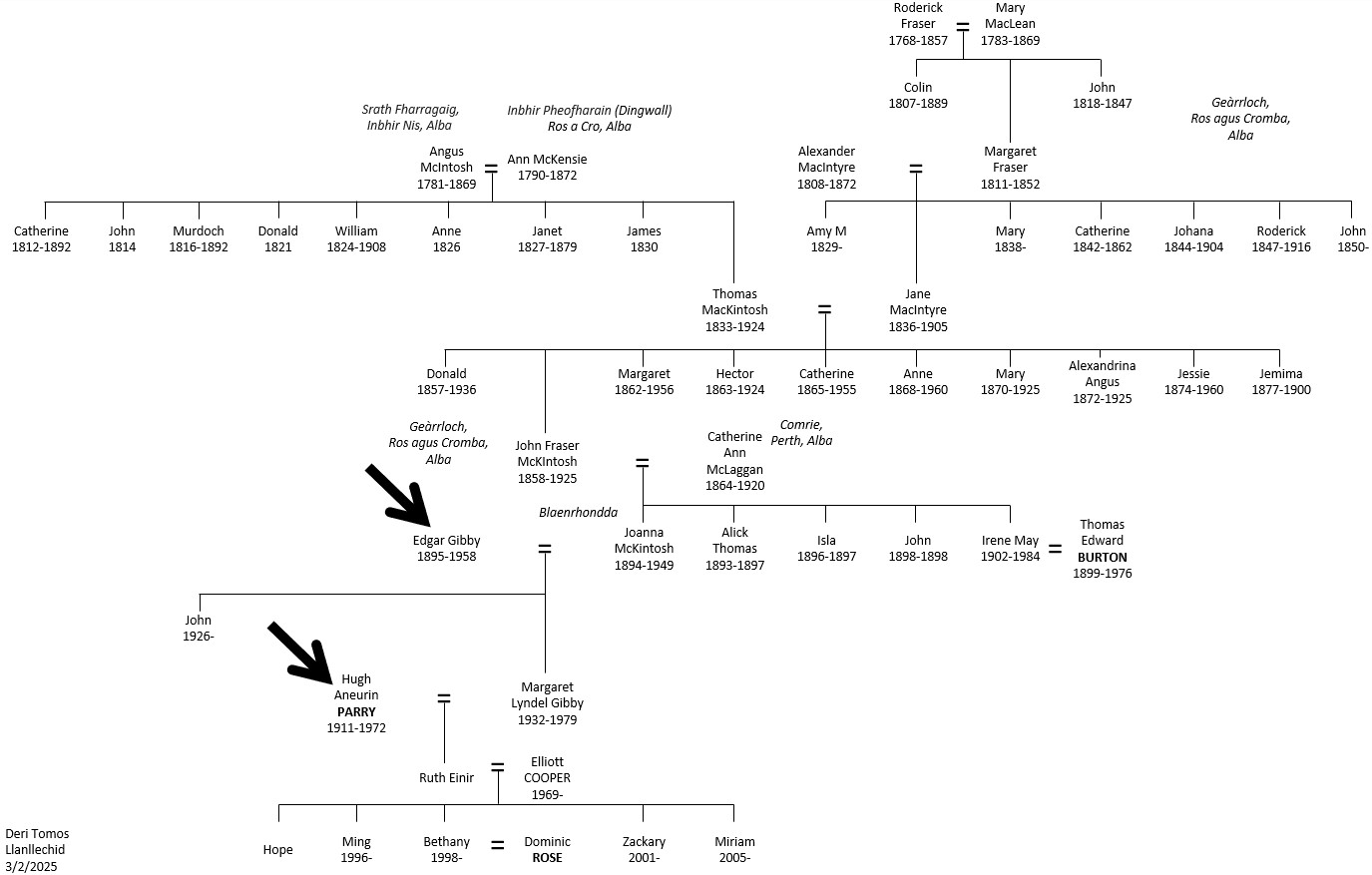4b. Hugh Aneurin Parry (1911-1972) a Margaret Lyndel Gibby ( 1932-1979) (Teulu McKintosh)
