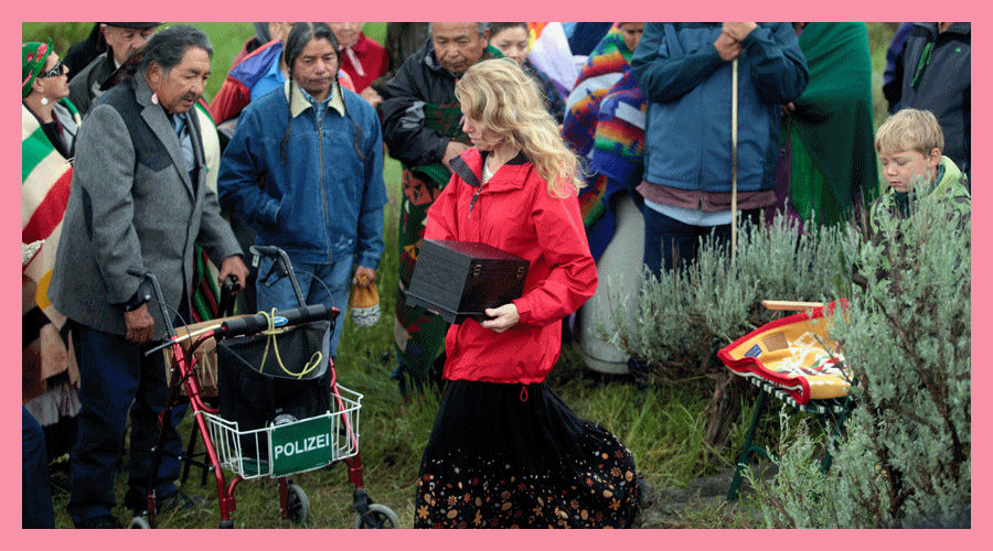 Dengys cart achau’r teulu mai gwr o’r enw Ernie LaPointe, a anwyd yn Wazí Aháŋhaŋ Oyáŋke (Rhandir Frodorol Pine Ridge) yn Ne Dakota yw or-ŵyr Tȟatȟáŋka. Lladmerydd brwd i Genhedloedd Cyntaf yr Unol Dalaethiau. Cred Ernie mai yn Mobridge y mae ei hen daid ac y mae’n cymryd camau cyfreithiol i gael yr hawl nid yn unig i datgan hynny’n ffurfiol – ond i symyd yr olion, unwaith eto. Y tro hwn i safle uchafbwynt bywyd Tȟatȟáŋka ar faes Y Little Big Horn (Brwydr y Llain Gwerog i’r Lakota).